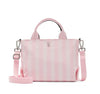 The Victoria's Secret Mini Travel Tote Bag in Heritage Stripe is a stylish and practical accessory perfect for any occasion. With a rectangular shape and a silver hardware accent, this limited edition tote features a zip closure and a top handle in pink. The exterior color of pink and white stripes adds a touch of iconic style, while the nylon fabric and polyester lining offer durability and comfort. This mini tote is ideal for travel, casual outings, formal events, and business meetings, making it a versatile and fashionable choice for women on the go.